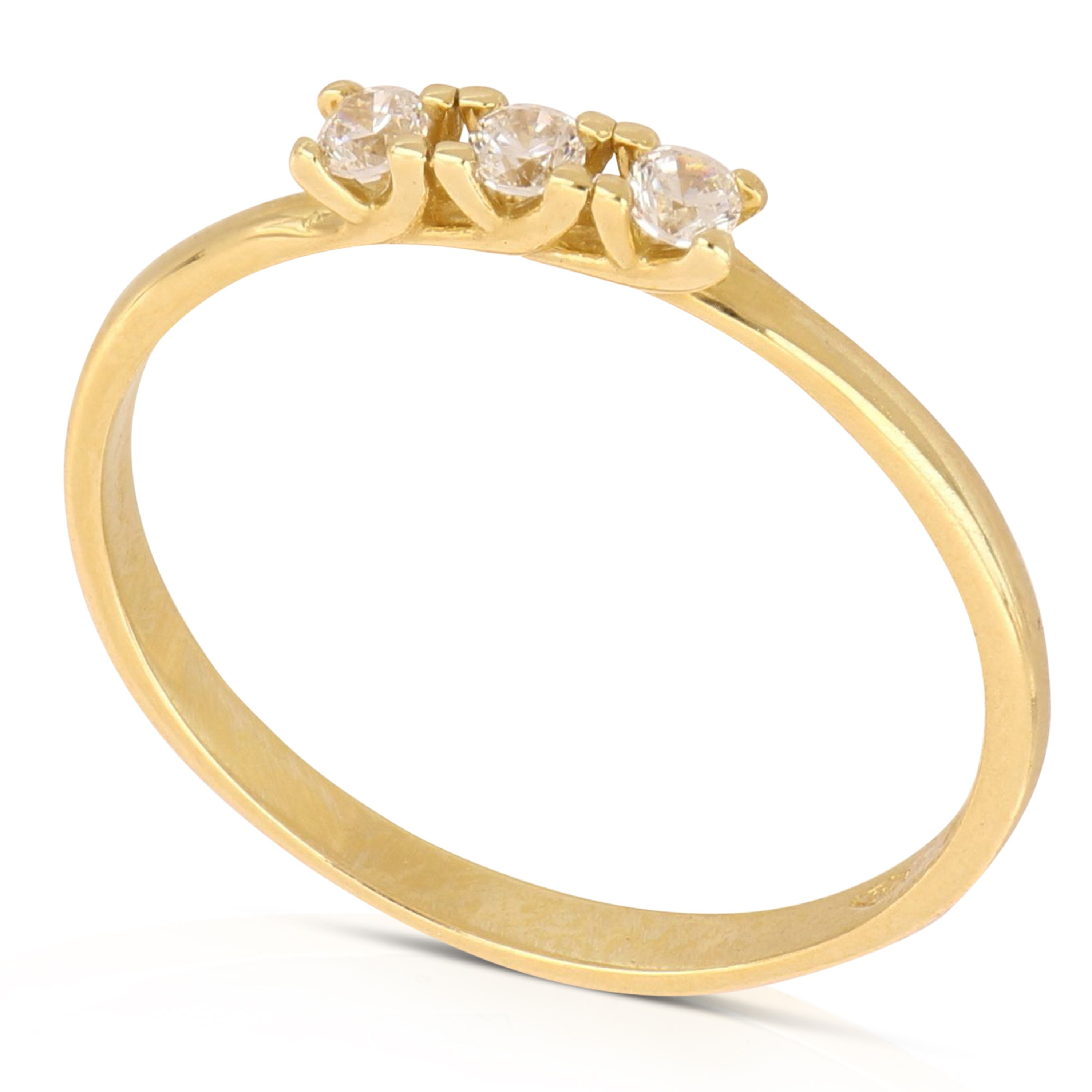 Scopri la brillantezza di questo Anello Trilogy in oro giallo 18kt, dal peso di circa 1,9 grammi. Le tre pietre incastonate con cura creano un gioco di luce straordinario, perfetto per celebrare i momenti più speciali o per valorizzare qualsiasi look quotidiano.