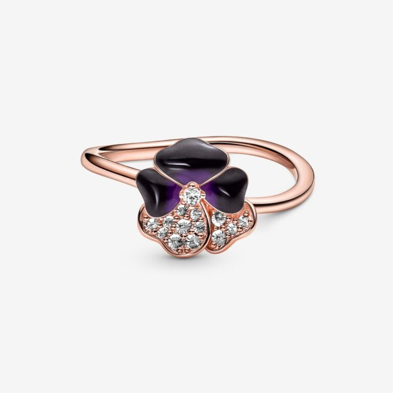 Celebra il potere dei fiori con il nostro anello Viola del pensiero viola intenso. Il gioiello, realizzato con placcatura in oro rosa 14k, presenta due petali decorati con pavé di pietre scintillanti e tre petali dipinti a mano con smalto di colore intenso che rendono ogni fiore assolutamente unico. Una fascia dalla forma organica imita un gambo autentico ed evoca la libertà della primavera. La viola del pensiero, che simboleggia l’amore nelle sue tante forme, è l’ultima novità del nostro giardino. Indossa il gioiello per ricordare tutte le persone care della tua vita.