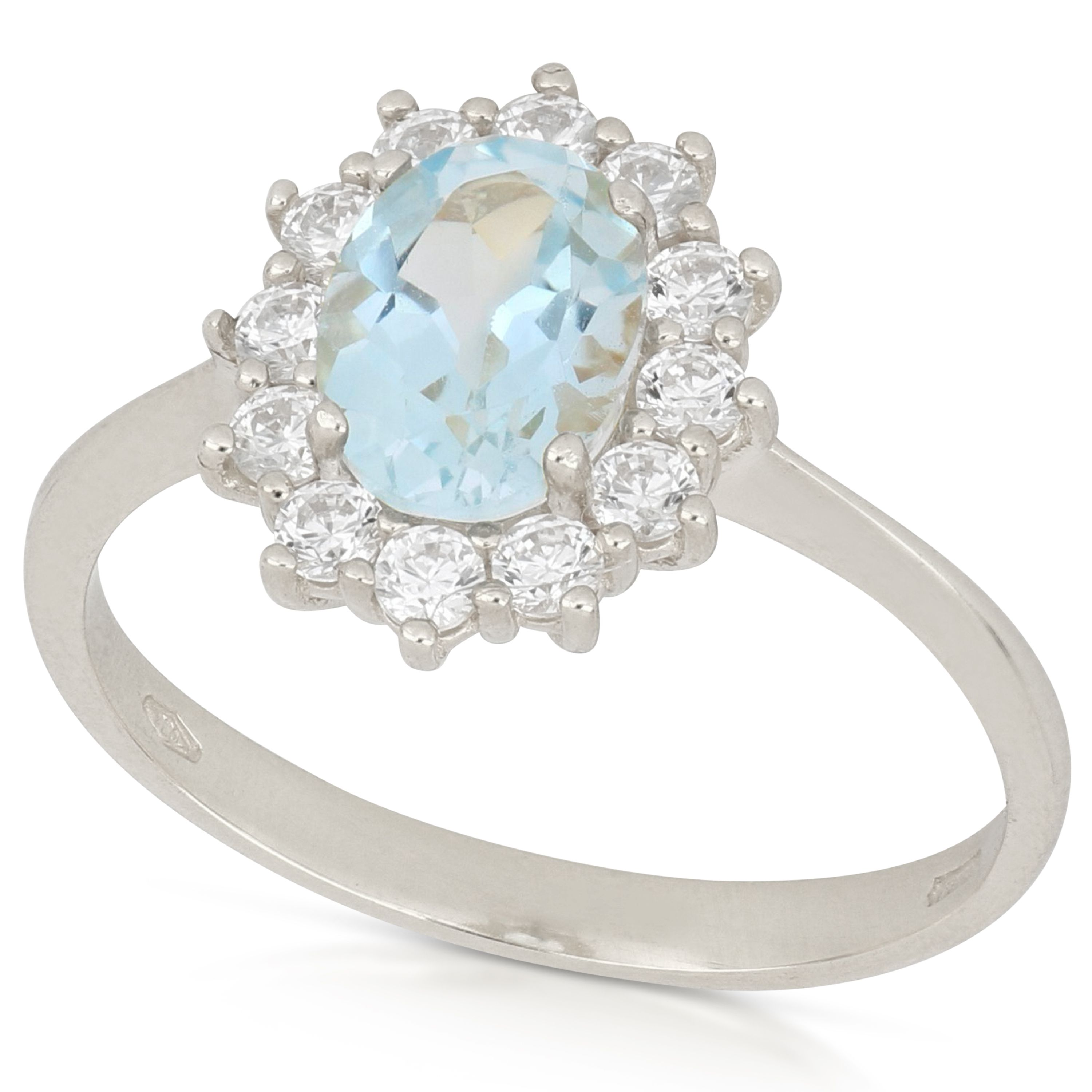 Anello Tondo Gioielli in oro 18kt con pietra azzurra e contorno di zirconi