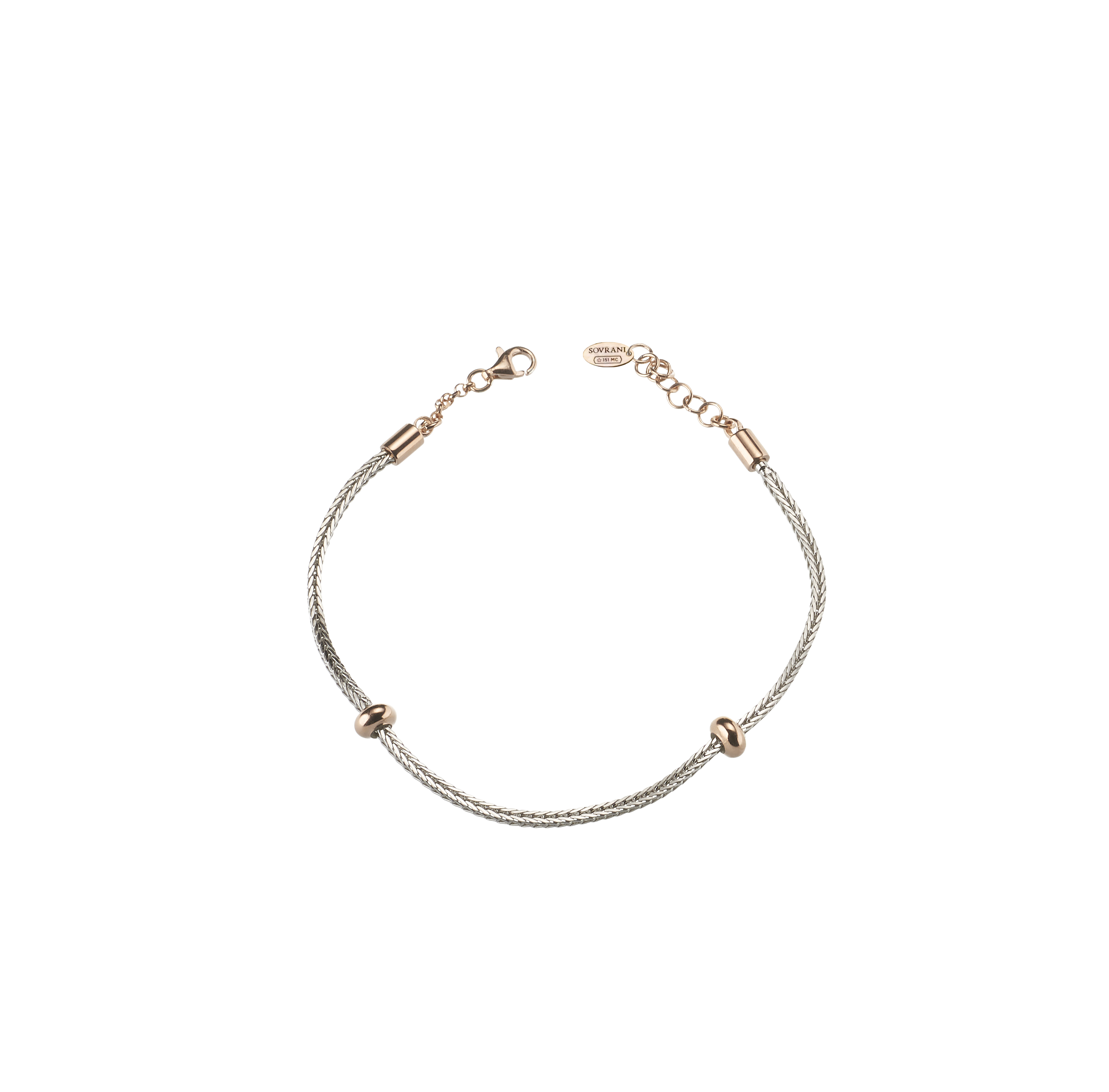 SOVRANI - BRACCIALE DANCING NAMES - J006 Bracciale in argento 925 con elementi in oro rosè. Lunghezza cm 17+3. La referenza è J006