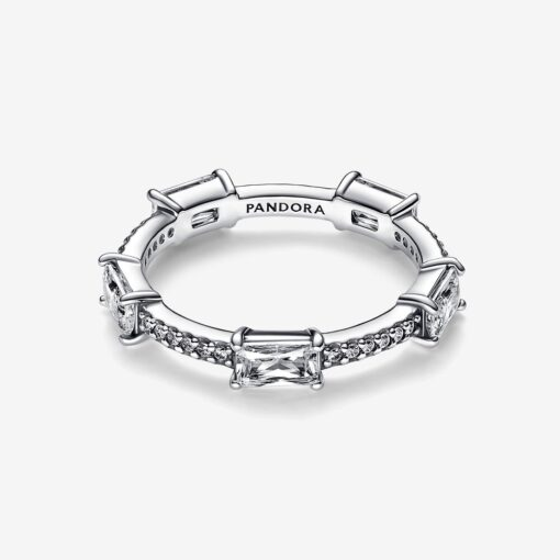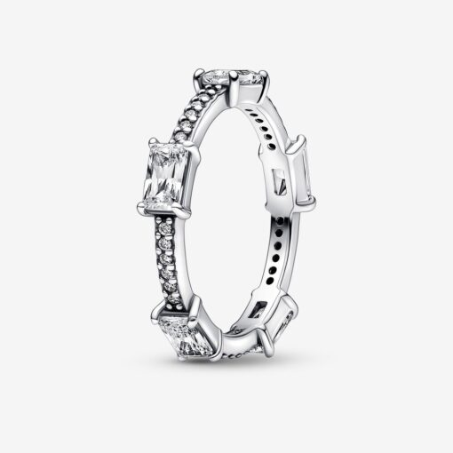 Argento sterling 925; 5 zirconia cubica incolore rettangolare taglio radiante, incastonatura a griffe; 30 zirconia cubica incolore taglio brillante rotondo, incastonatura a granette