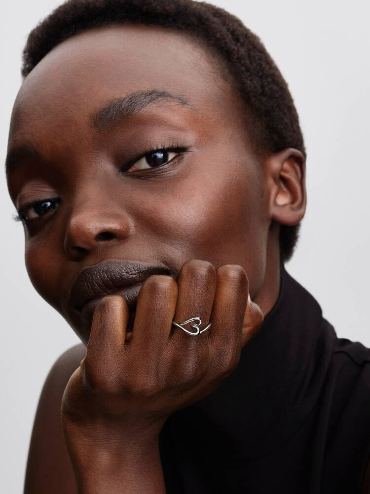 L'amore, ridefinito. Questo anello in Argento Sterling 925 presenta un cuore aperto formato da una singola linea sinuosa. Il suo stile scultoreo aggiunge movimento a qualsiasi look.