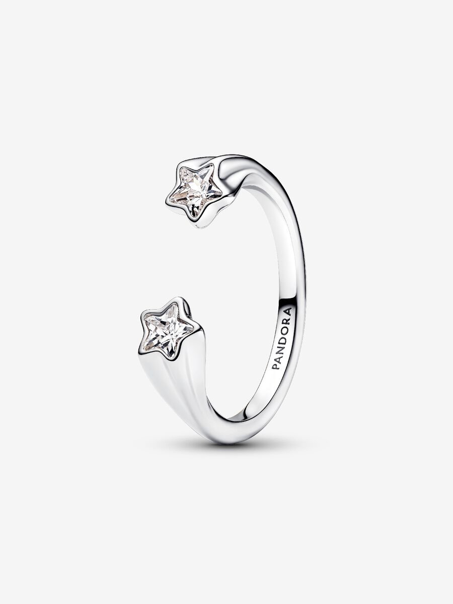 Con due pietre a stella su una fascia aperta, questo anello in Argento Sterling 925 simboleggia i legami che illuminano la tua vita. Perfetto da indossare da solo o con altri gioielli ispirati al cielo.