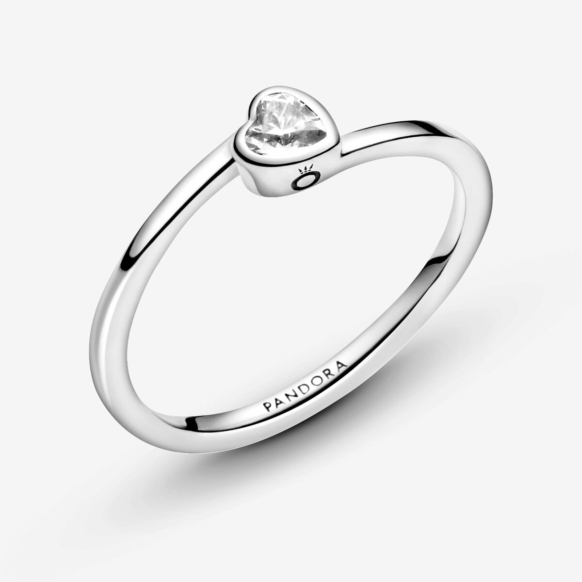 Argento Sterling 925, 1 zirconia cubica incolore taglio cuore incastonata a castone