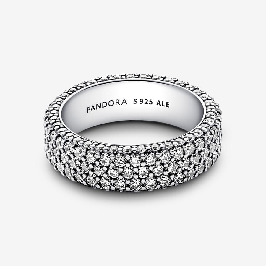 Risplendi con il nuovo Anello Pavè Fascia Tripla. Realizzato in Argento Sterling 925, questo anello presenta tre file di pavè al centro e una fila di pietre leggermente più piccole rivolta verso l'esterno su ciascun lato, che creano un profilo quadrato leggermente arrotondato che scintilla da ogni angolazione. Indossalo da solo o abbinato ad altri anelli decorati da pavé della collezione Timeless per creare un look luminoso.