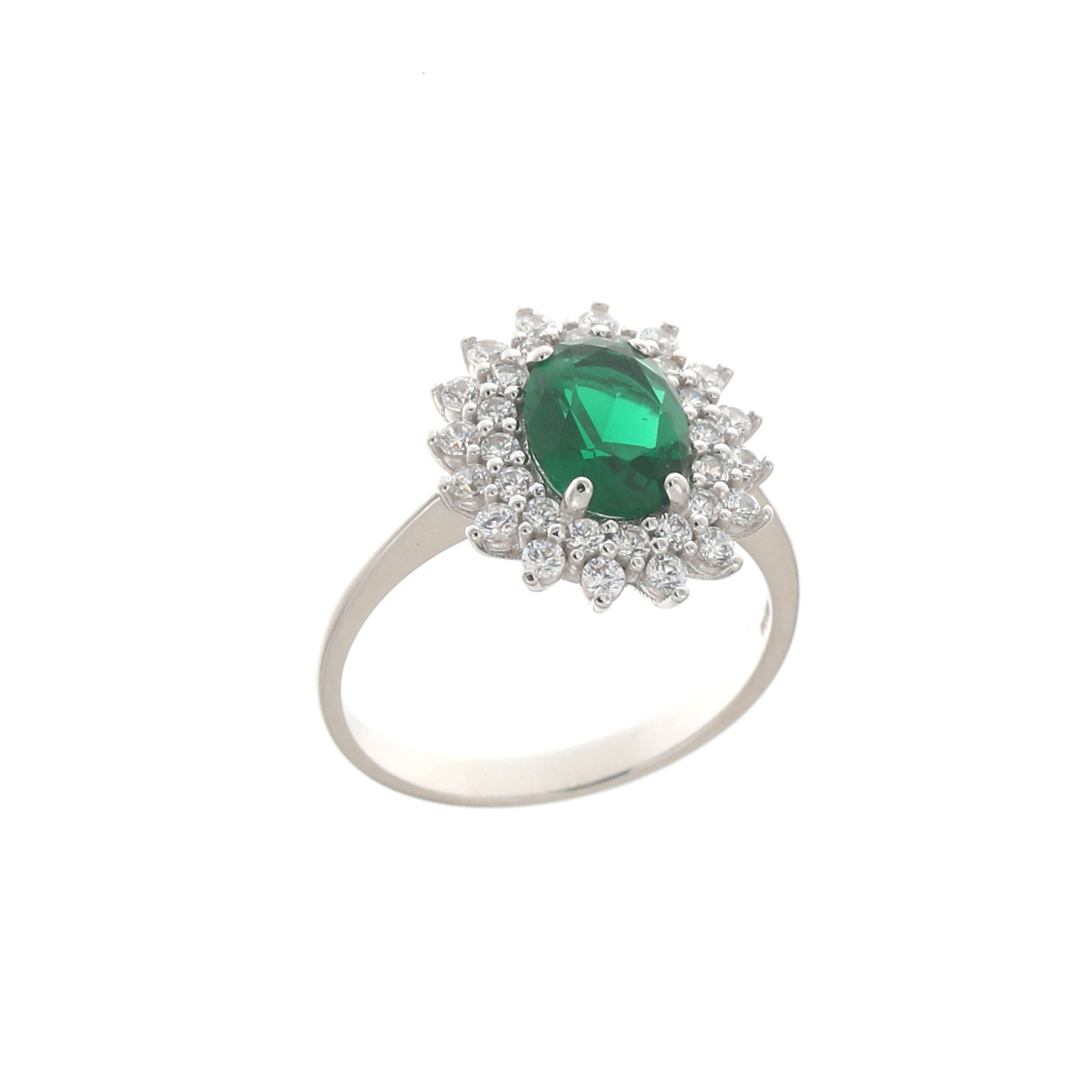 Anello Tondo Gioielli in oro 18 kt con verde e contorno di zriconi