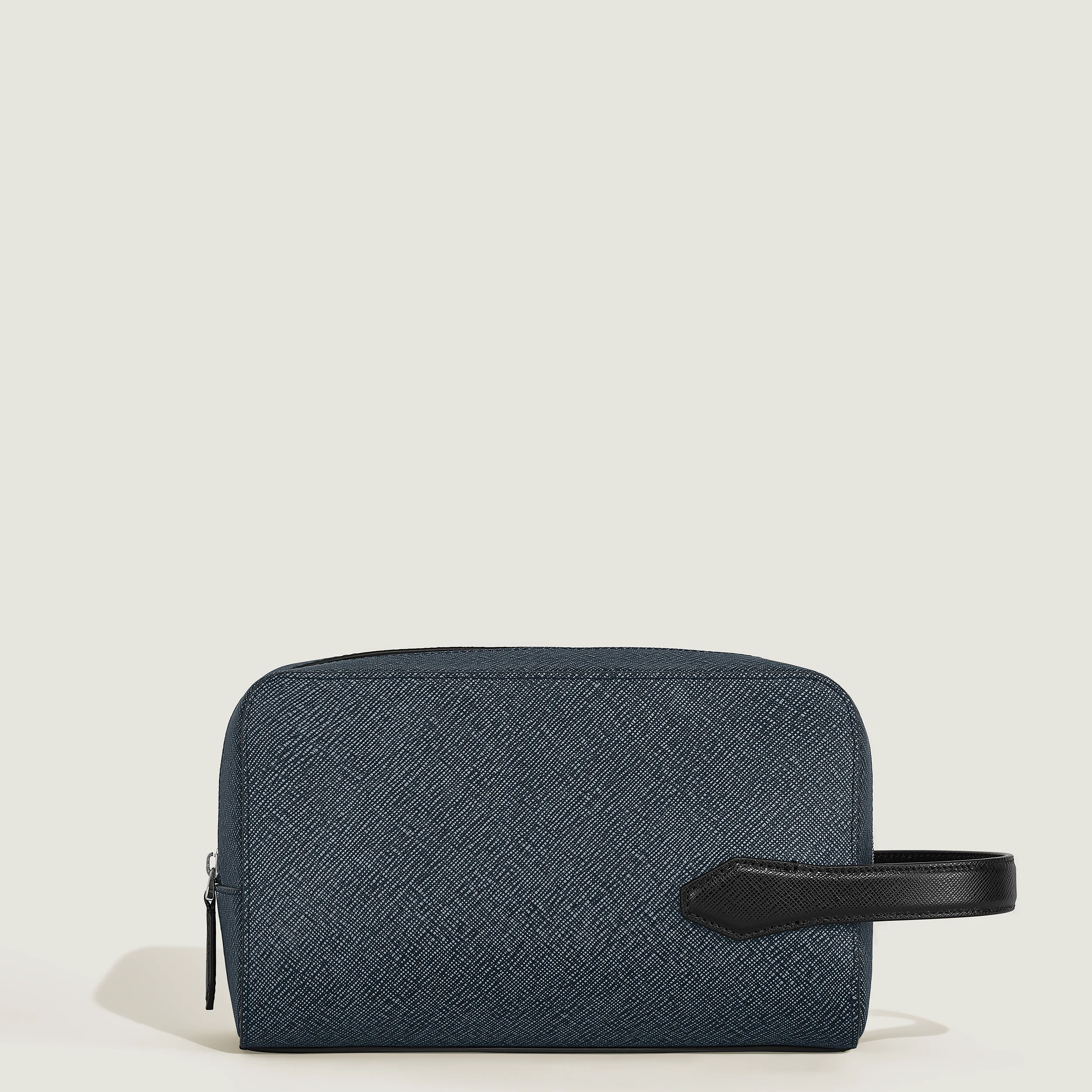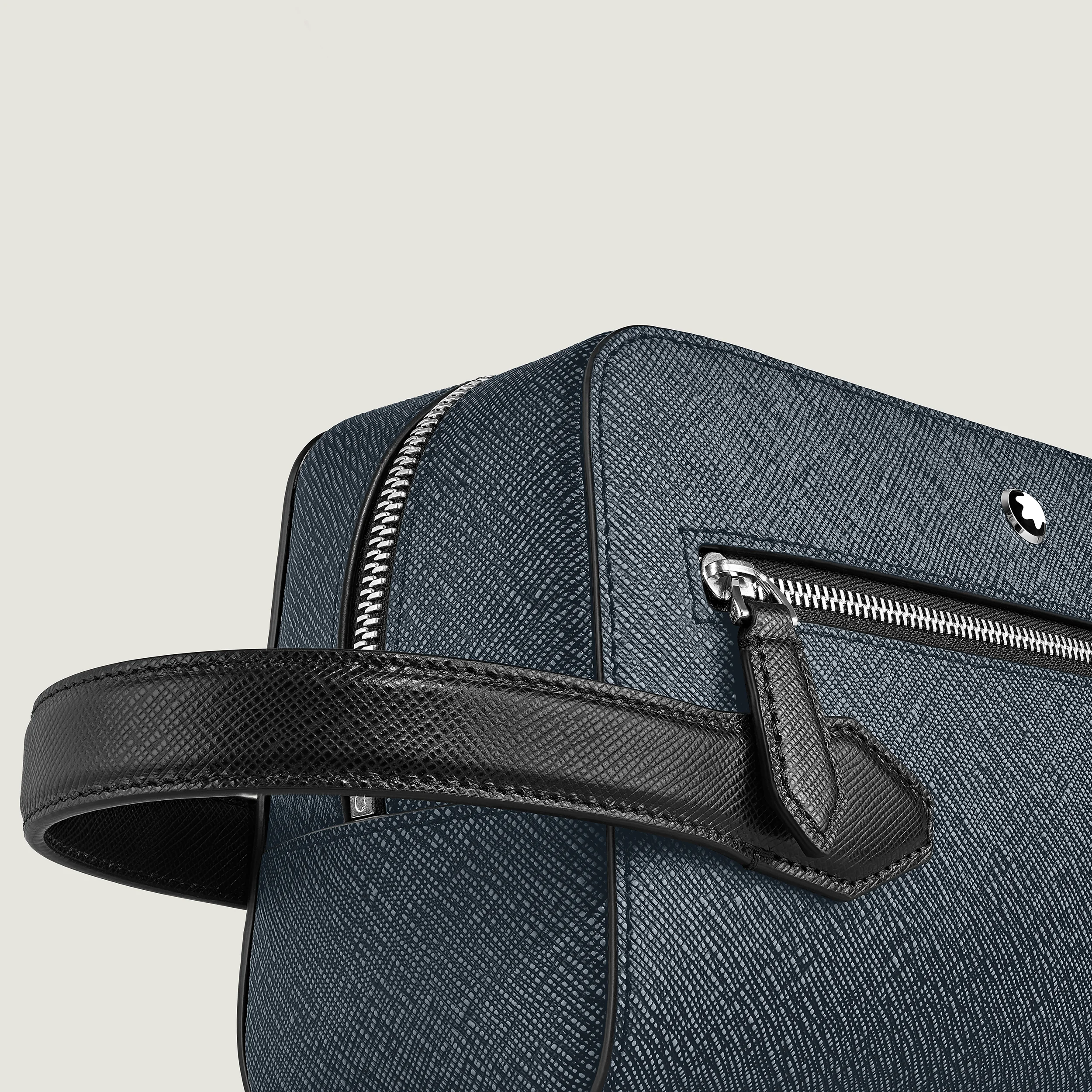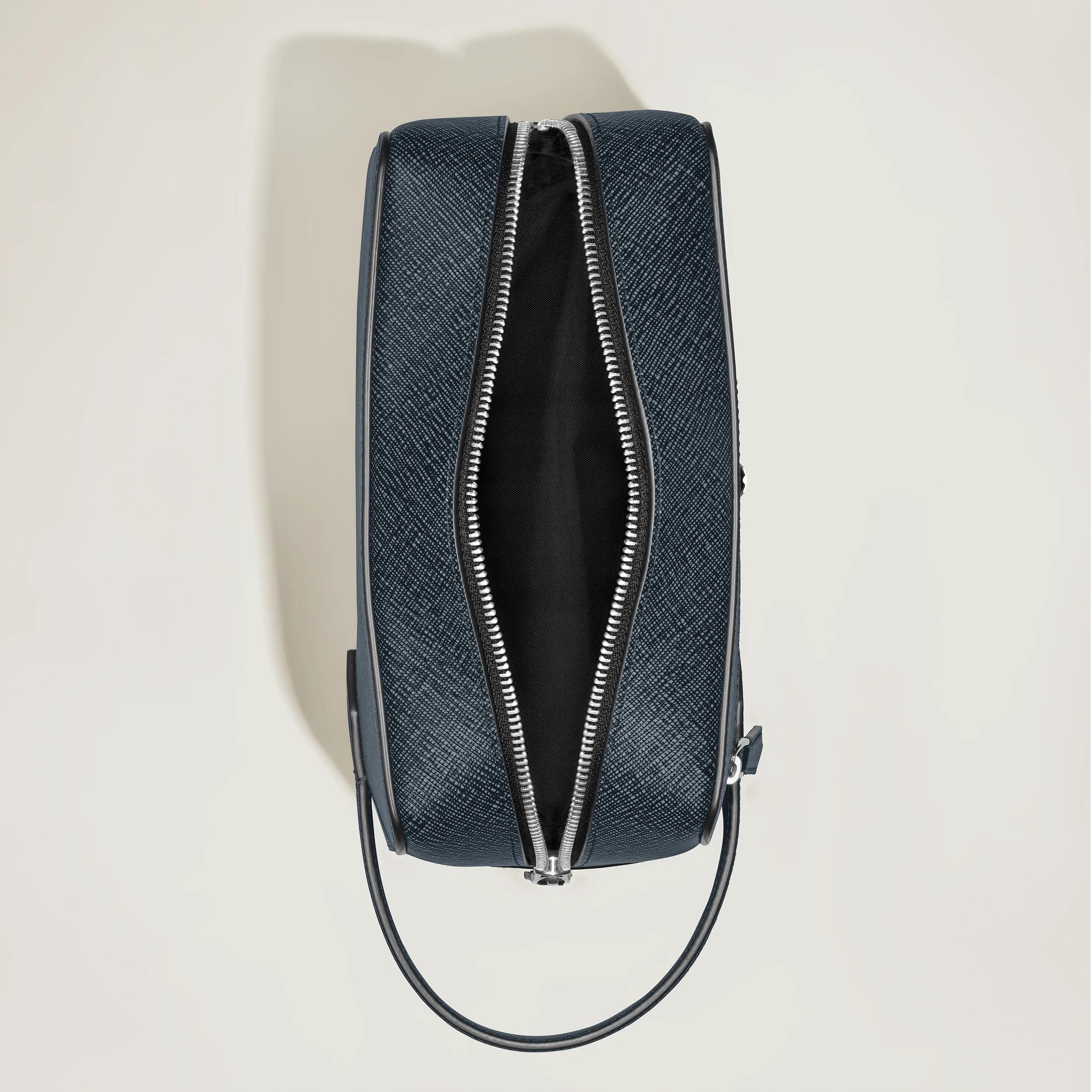 Per gli affari o per le vacanze, questa pochette è un must-have da viaggio. Realizzata in pelle Sartorial goffrata in una raffinata combinazione bicolore di blu e nero classici, presenta un interno spazioso e un esterno con tasca con cerniera per i tuoi oggetti essenziali. Grazie ai manici in pelle, puoi portarla a mano o riporla in una borsa da viaggio.