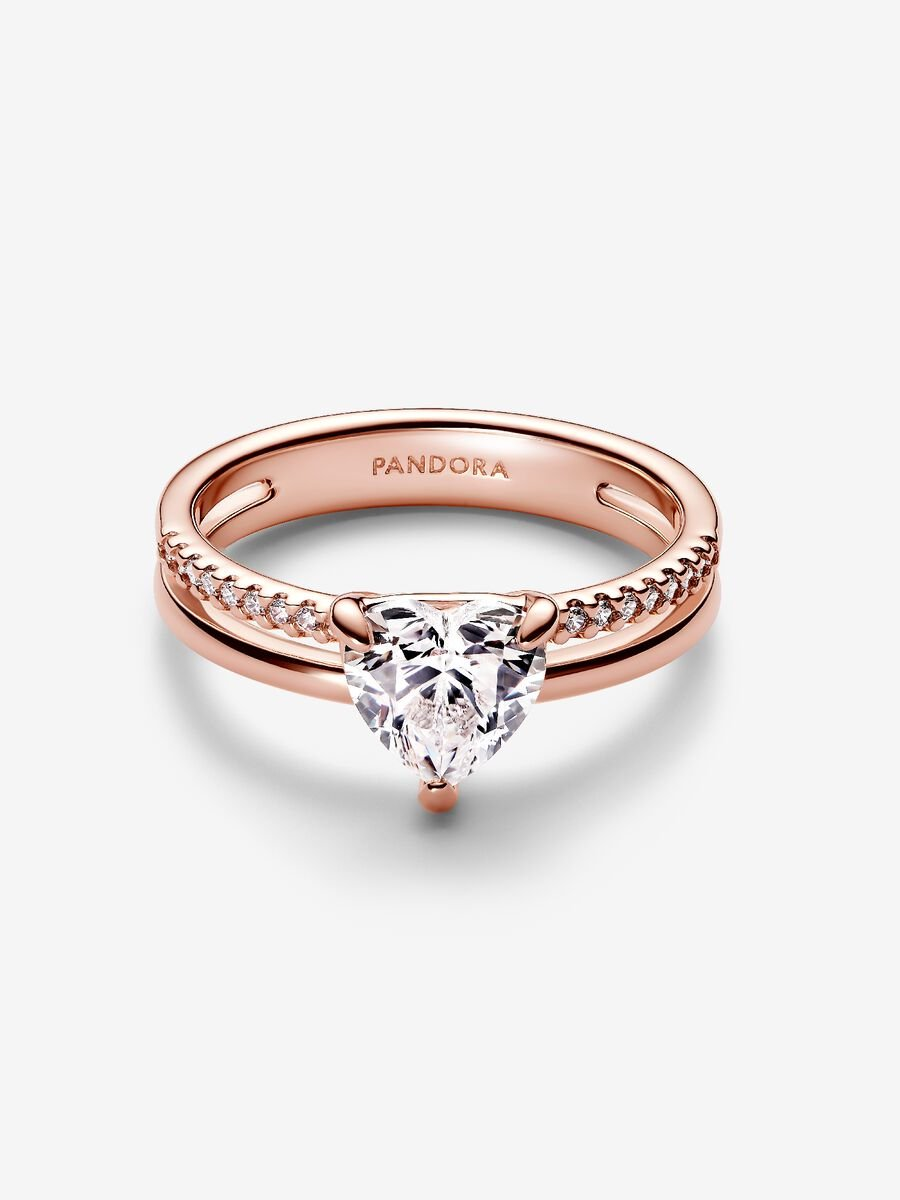 Celebra l'amore. Questo anello placcato in Oro Rosa 14k presenta un design unico con due fasce collegate, una lucida e l'altra decorata da pavé. Al centro si trova una luminosa pietra di zirconia cubica a forma di cuore che dona un tocco romantico.