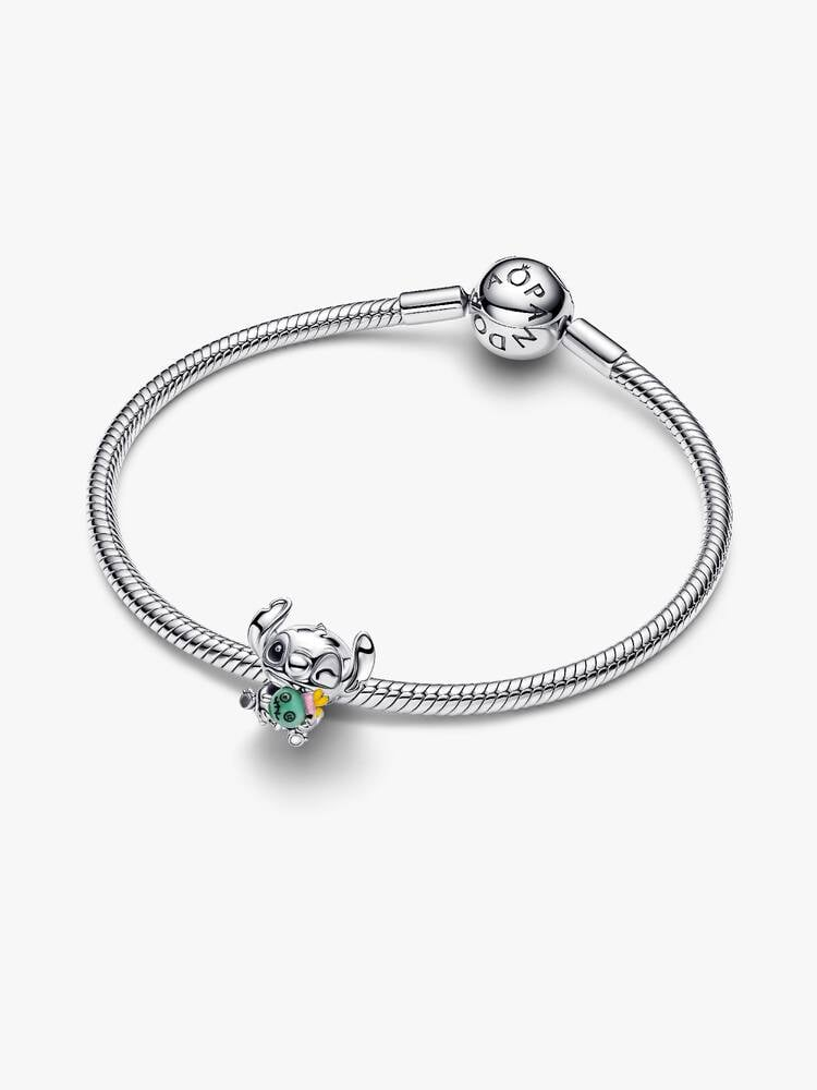 Celebra l'amore e l'amicizia con il charm Stitch di Disney. Realizzato in Argento Sterling 925, Stitch coccola Scrump, la bambola preferita della sua amica Lilo. Scrump prende vita grazie al vetro di Murano verde con tocchi di smalto colorato.