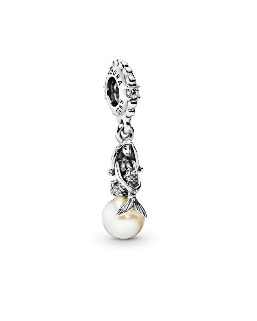 Questo charm pendente in Argento Sterling 925 con 2 pietre di zirconia cubica con taglio brillante incastonate a granette, è ulteriormente impreziosito da una perla coltivata ad acqua e incastonata a perno. Dettagli importanti come la trama delle squame e la pinna finemente lavorata.