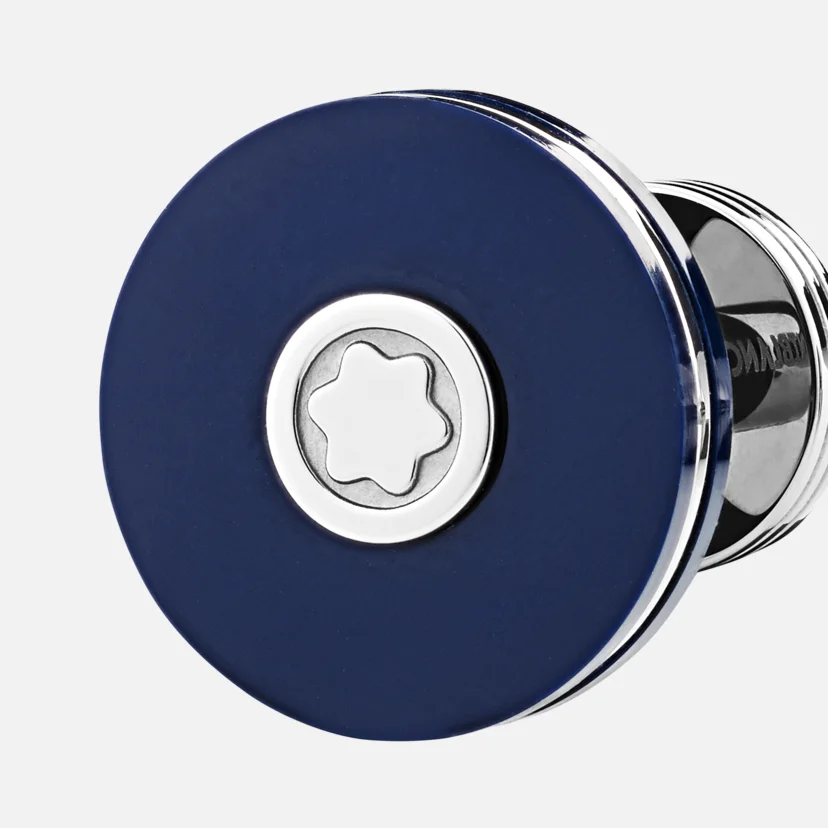 Gemelli Rotondi Montblanc di Acciaio Pregiato con Resina Blu