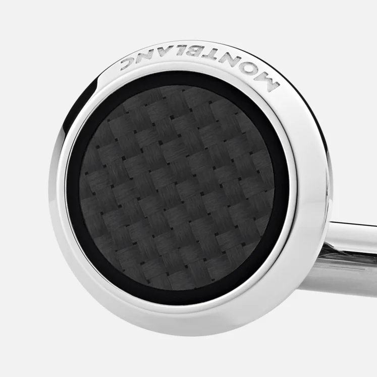 Gemelli Rotondi Montblanc in Acciaio Pregiato con Inserto Lavorato Effetto Carbonio