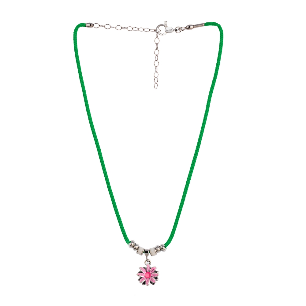 Girocollo Suali Kids Cordoncino Verde Riporti Bianchi e Charm Fiore