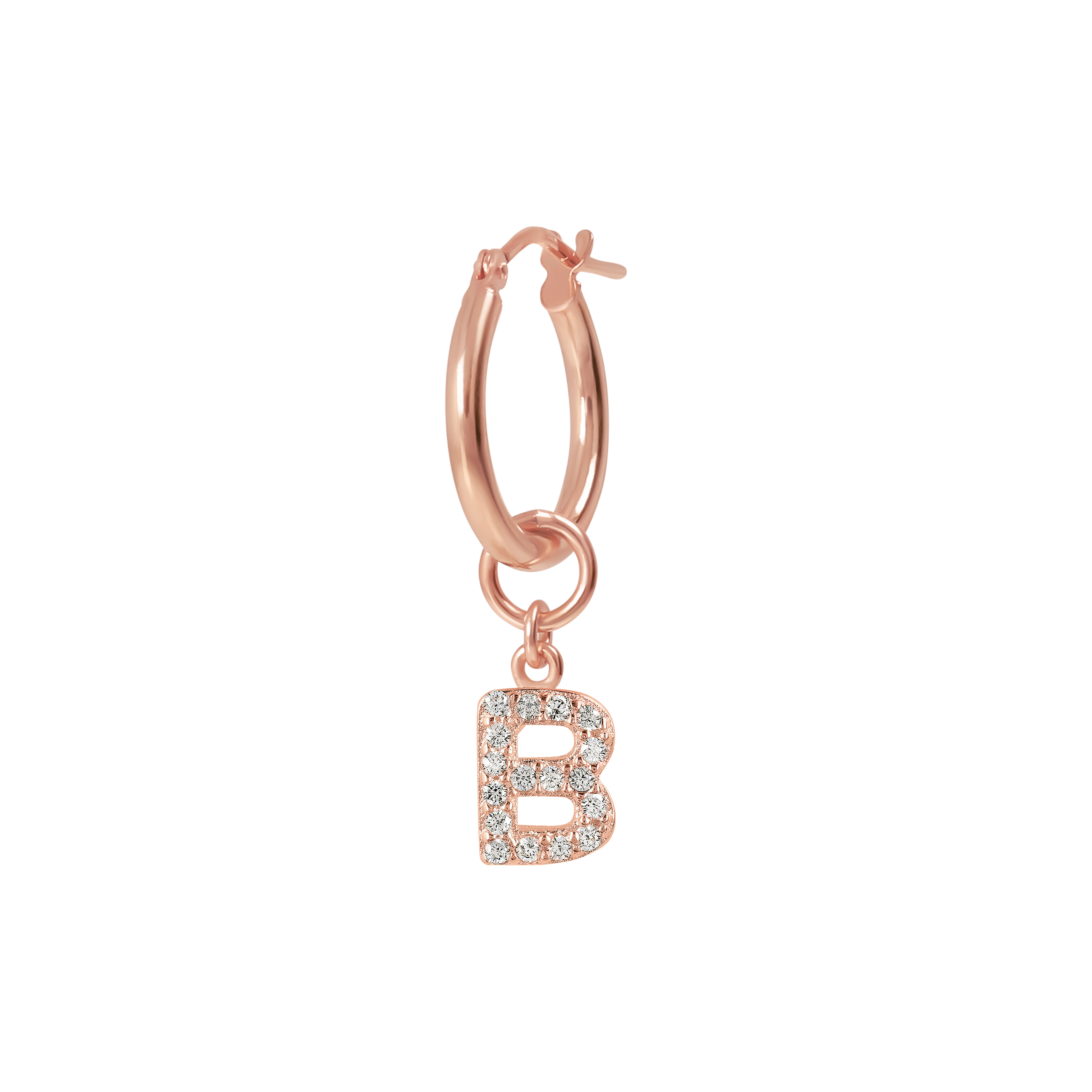 Orecchino pendente a cerchio Bronzallure realizzato in lega Golden Rosè, placcato oro rosa 18kt, con pendente "iniziale" in cubic zirconia, qualità luminosa