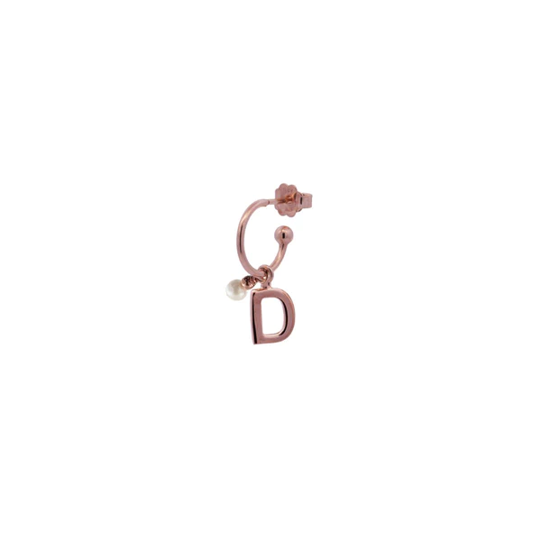 MONO ORECCHINO RUE DES MILLE LETTERA D - OR-LETPED1D Marchio : Rue Des Mille Collezione : Scrivi Il Tuo Nome Alphabet Genere : Donna Tipologia Gioiello : Mono Orecchino Tipologia Mono Orecchino : Mono Orecchino A Cerchietto Mono Orecchino Con Pendenti Diametro : 1cm Materiale : Argento 925 Perla Galvanica : Oro Rosa 18kt Iniziale : D Chiusura : Farfallina Confezione : Astuccio E Shopper Originale Garanzia Di Qualità
