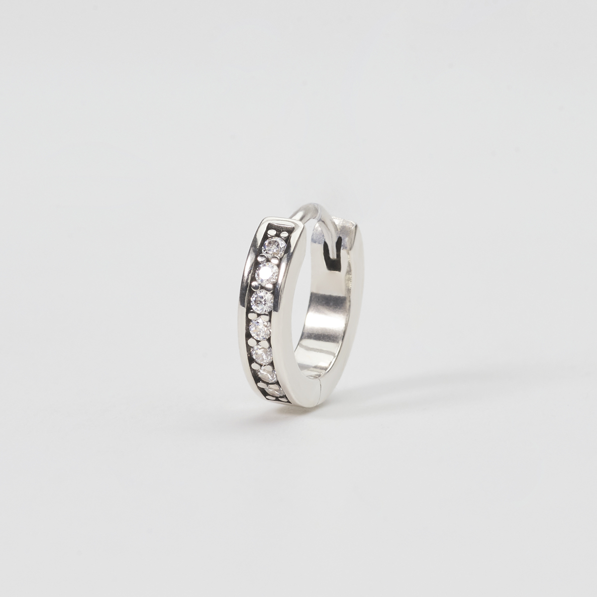 Orecchino in argento 925 rodiato diametro esterno 13.15 mm con zirconi bianchi diametro 1.50 mm