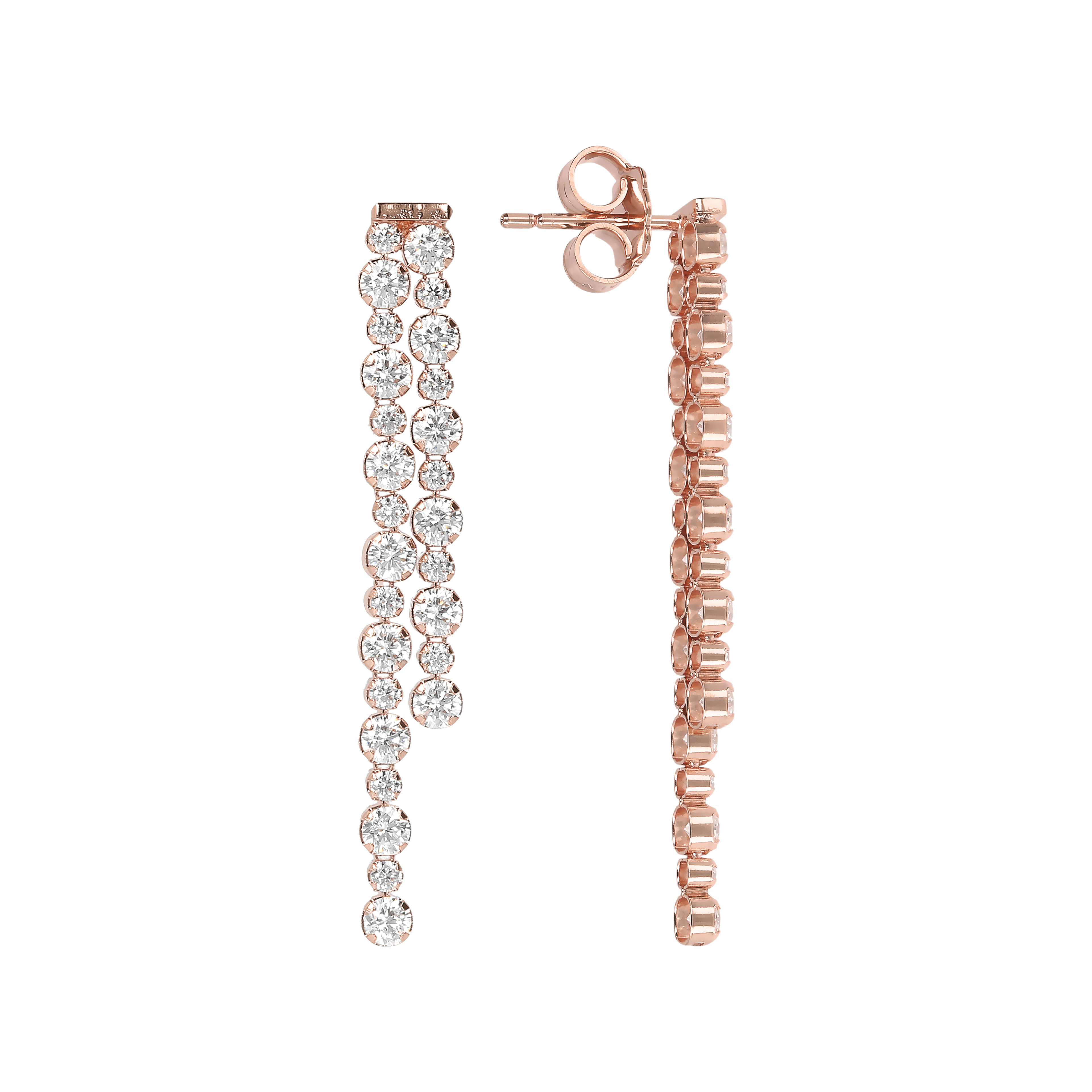 Orecchini pendenti tennis Bronzallure, realizzati su base Golden Rosè, placcati oro rosa 18kt, impreziositi da una doppia fila di cubic zirconia, qualità luminosa