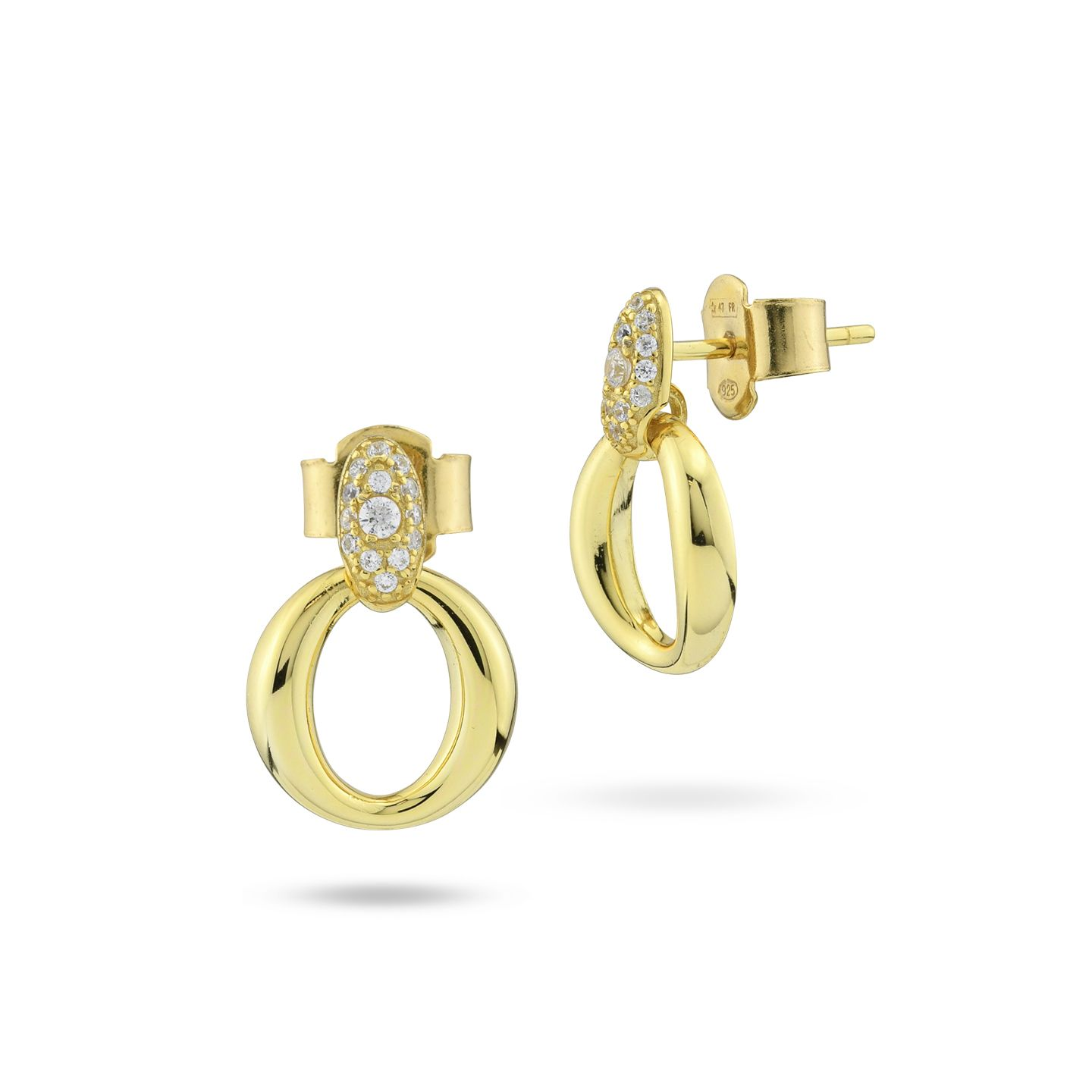 Orecchini Donna Boccadamo Placcati Oro Giallo con Modulo Circolare Pendente e Contromaglia Pavettata con Zircone