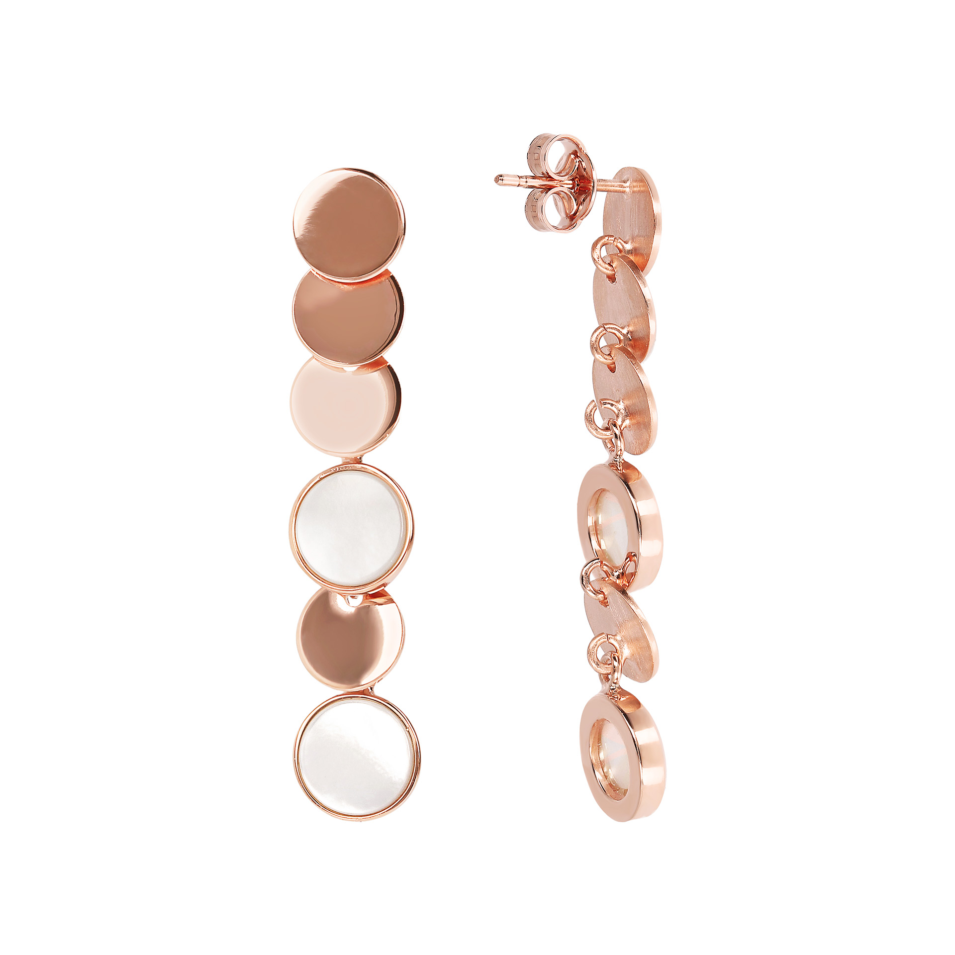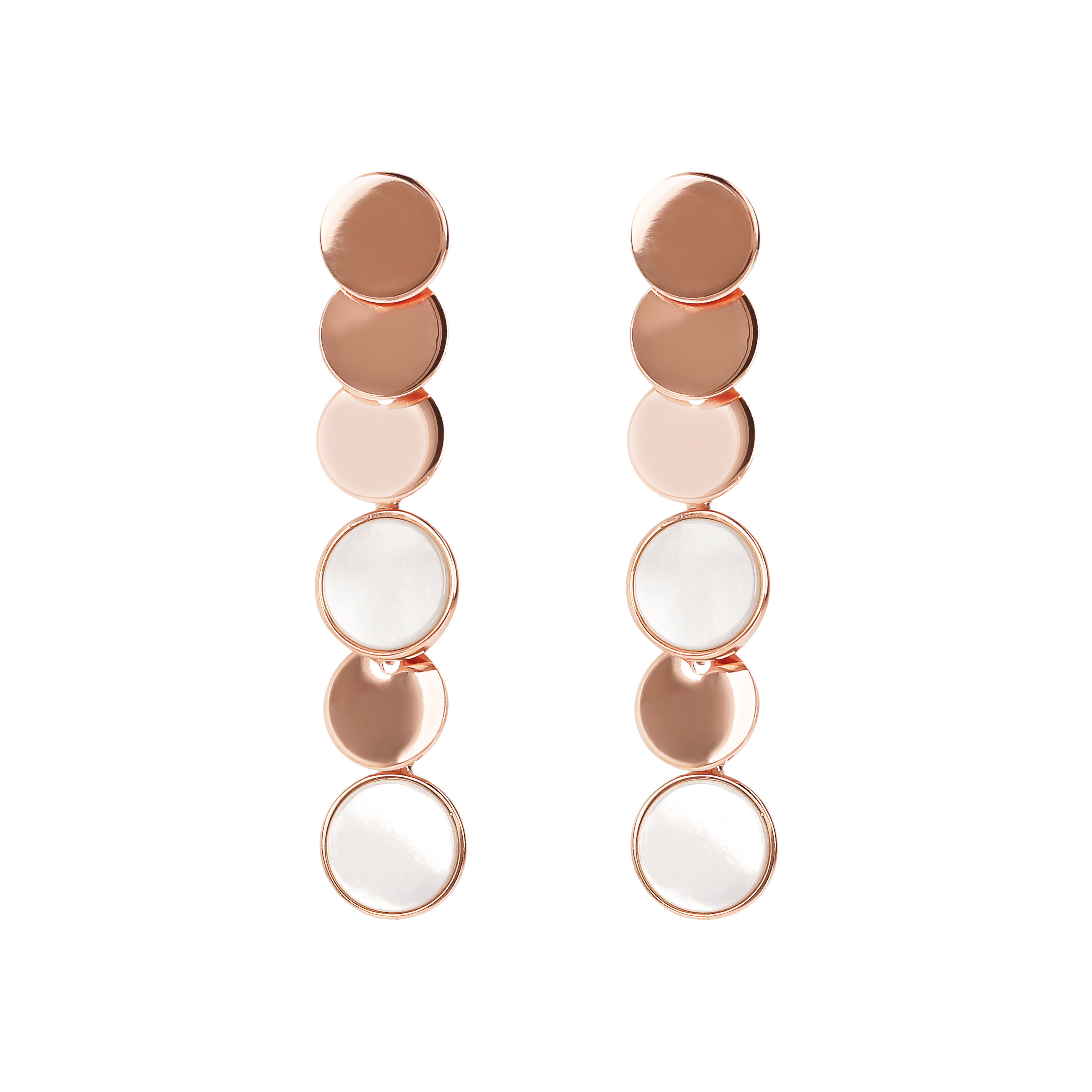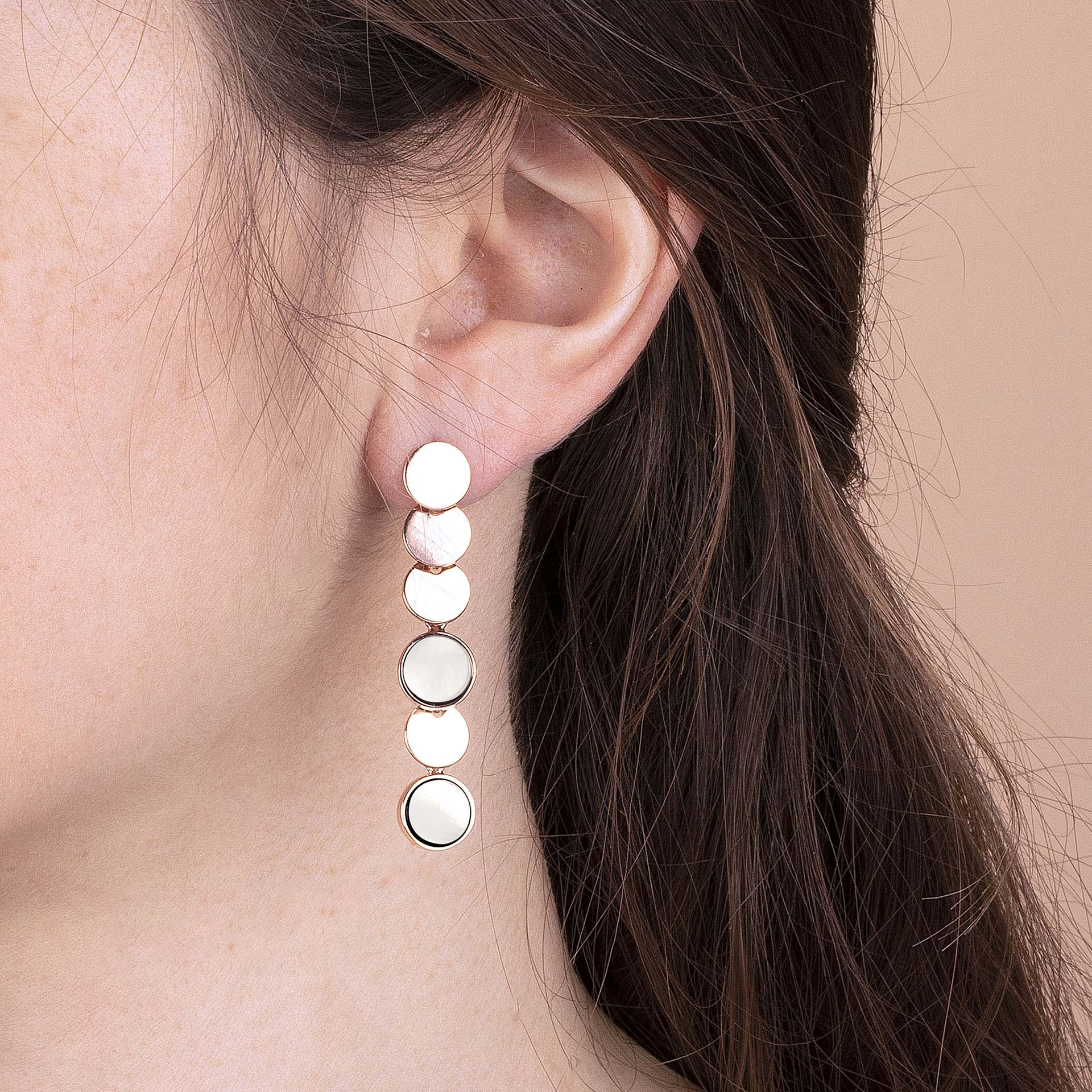 Orecchini pendenti Bronzallure in Golden Rosè, placcato oro rosa 18kt, composti da una fila di dischi in pietra naturale e golden rosè