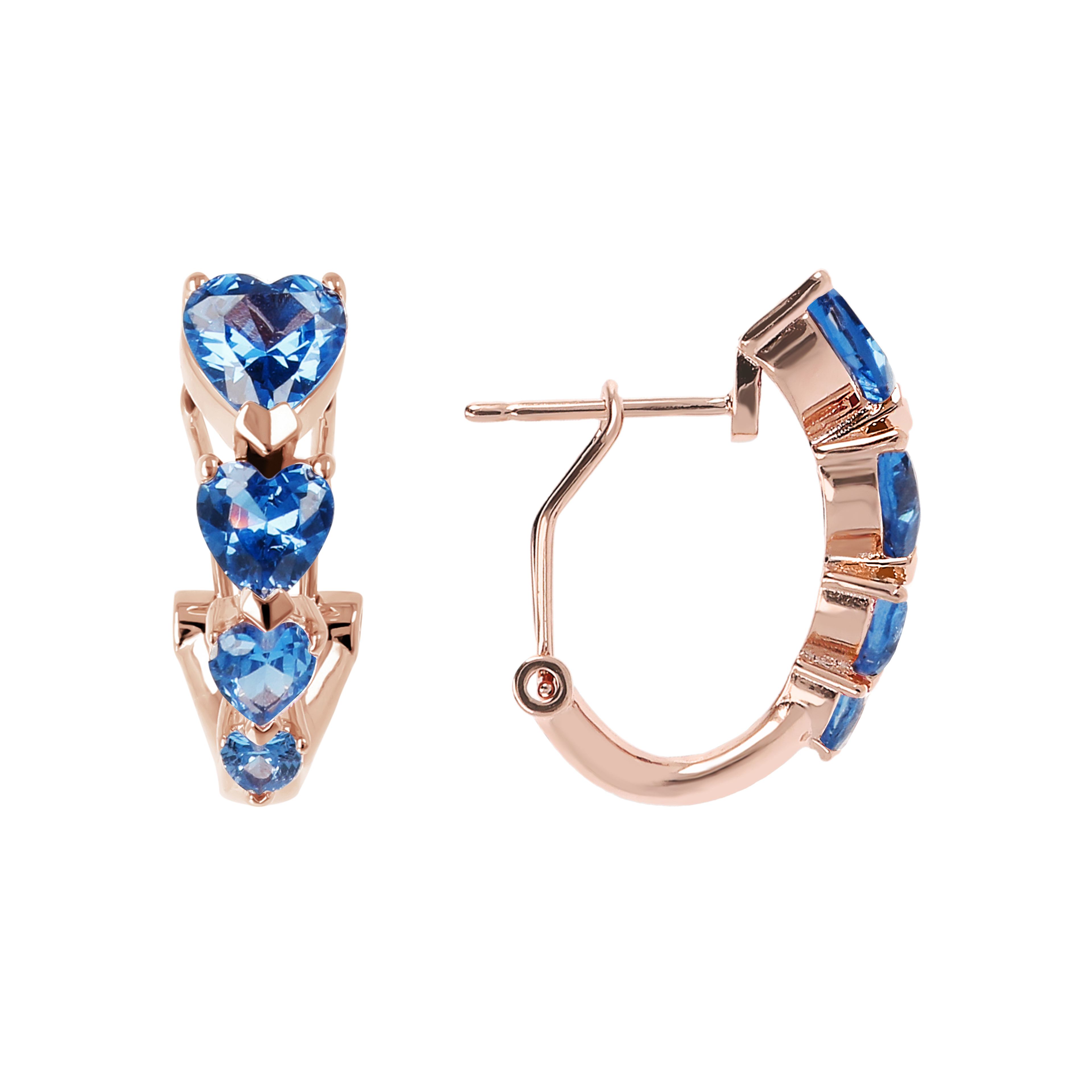 Orecchini a cerchio Bronzallure realizzati in lega Golden Rosè, placcati oro rosa 18kt con quattro cuori in cubic zirconia disposti in grandezza decrescente