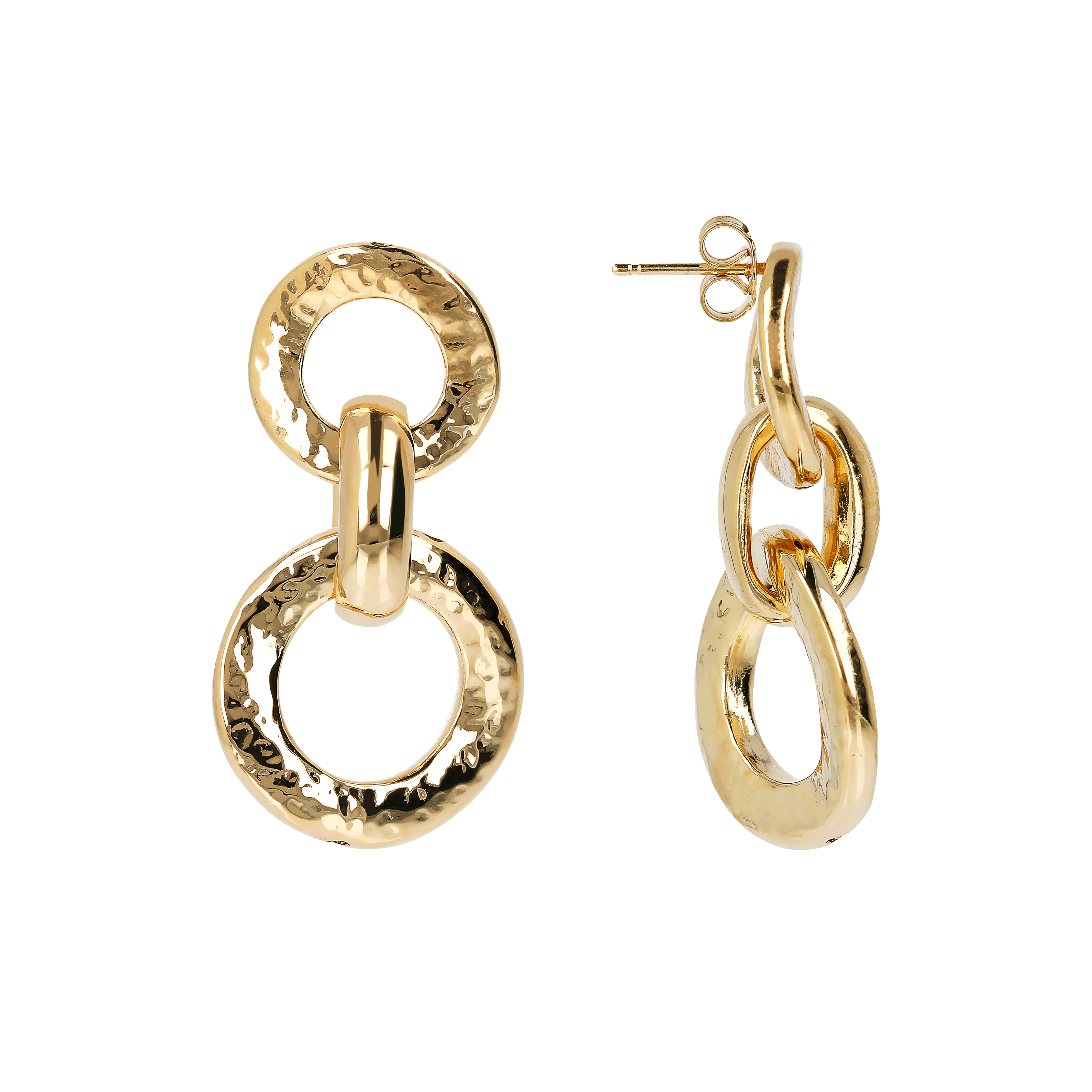 Orecchini Donna Etrusca Pendenti Martellati con Anelli Graduati