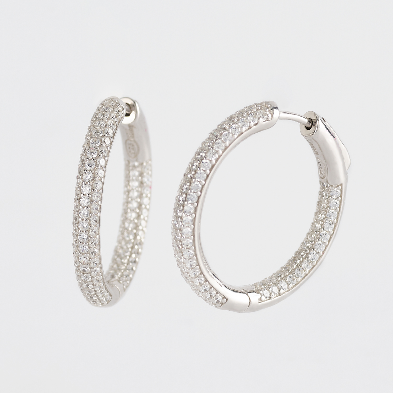 Orecchini argento 925 rodiato con zirconi diametro 1.25 mm, diametro esterno 24 mm