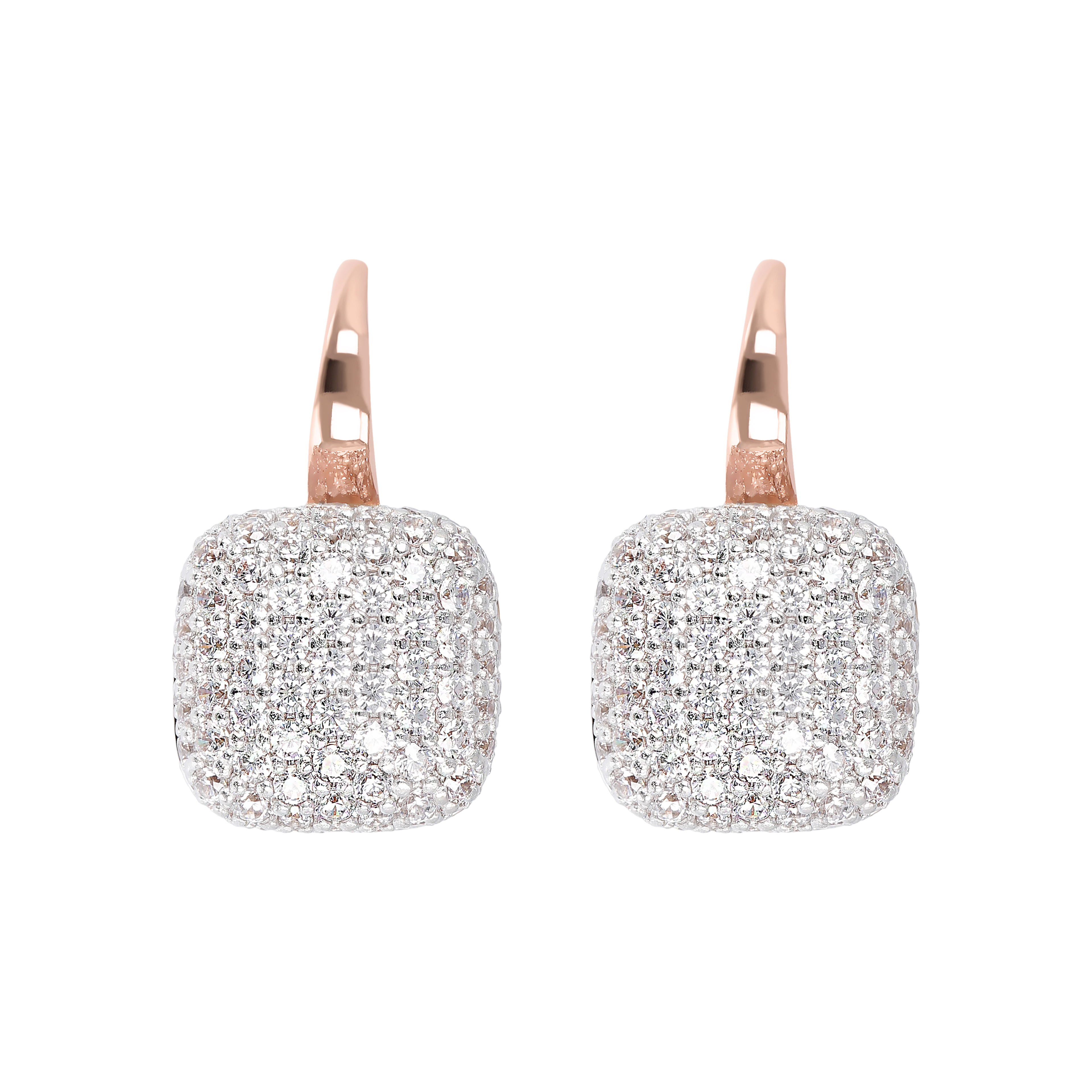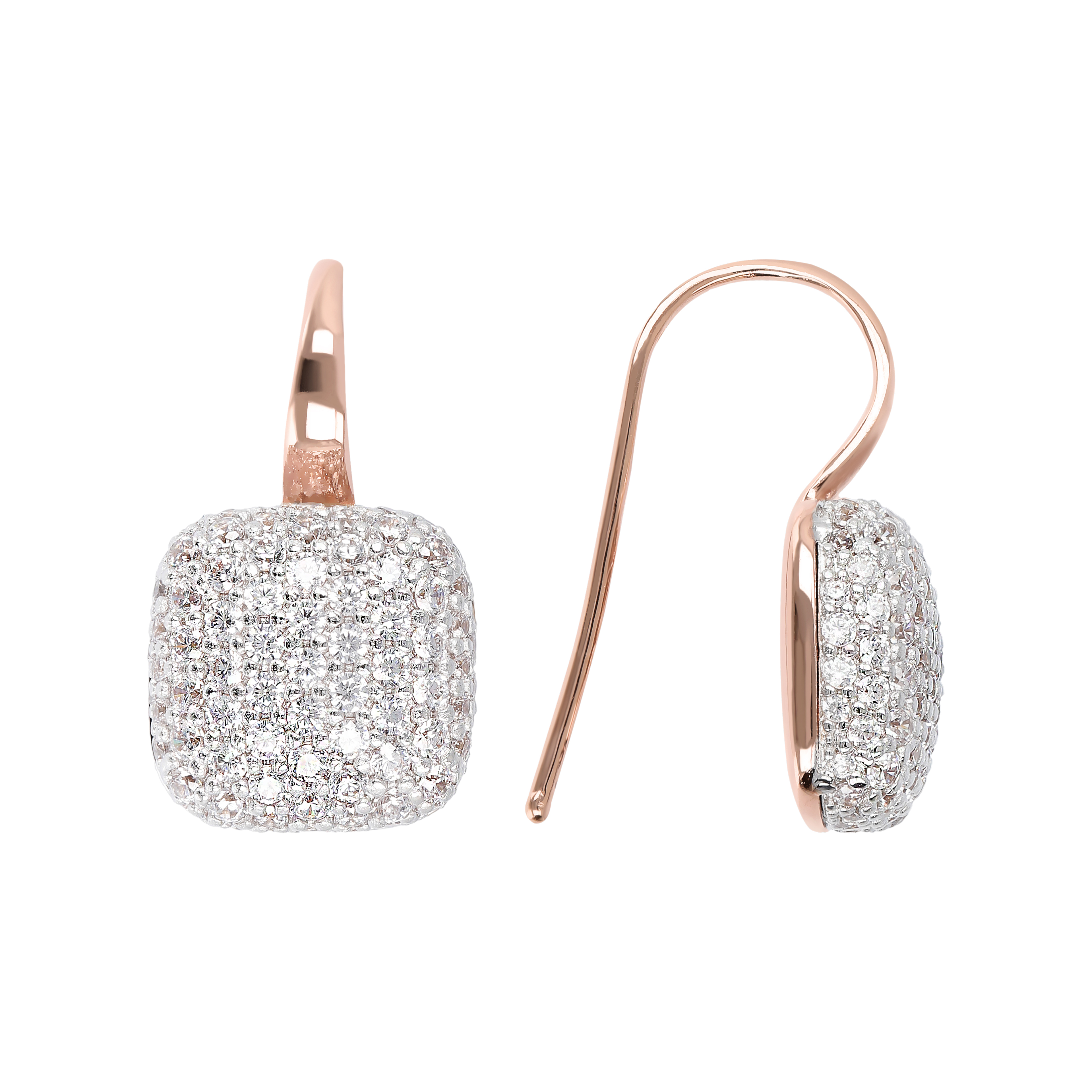 Orecchini pendenti Bronzallure realizzati in lega Golden Rosè, placcati oro rosa 18kt, dalla forma quadrata (12x12 mm) con pavè in cubic zirconia luminose