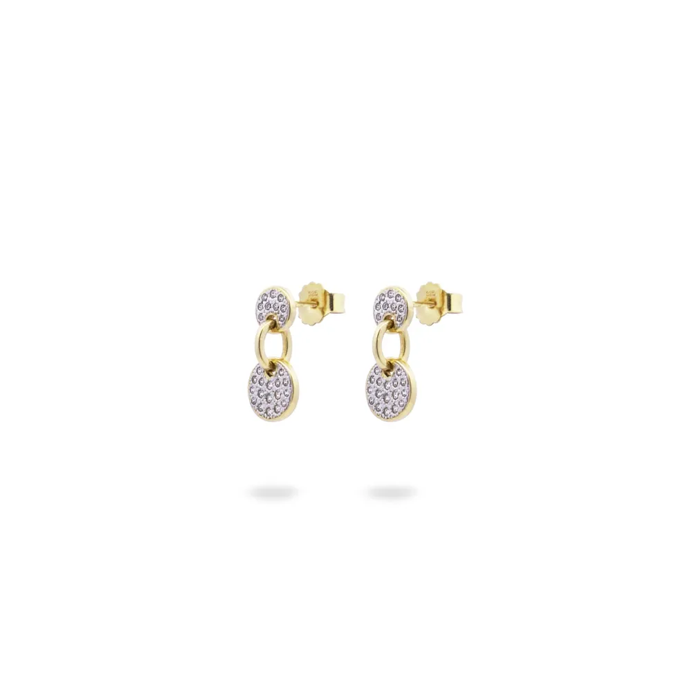 Gli Orecchini sono Realizzati in Argento 925 Rodiato con placcatura oro, con Doppio Cerchio Pavè. Lunghezza Orecchini 1.8cm Circa