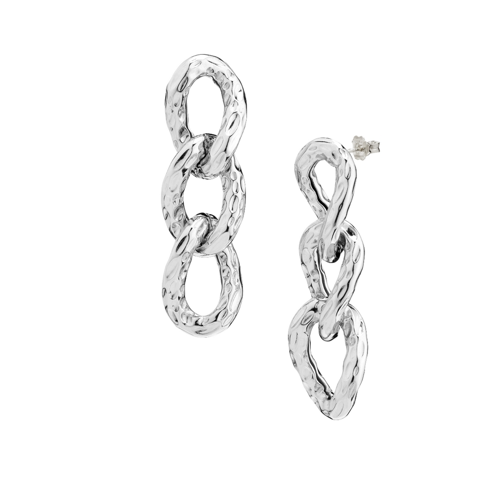 Il fascino dell'argento trasformato in un prezioso gioiello da esibire con eleganza, semplice e contemporaneo. Orecchini pendenti maglia a catena battuta. Cura per ogni dettaglio rifiniti a mano in argento 925. Misura: cm 6
