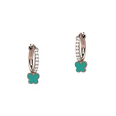Orecchini Nanan Bijou in Argento Rosè con Zirconi e Farfalla Verde