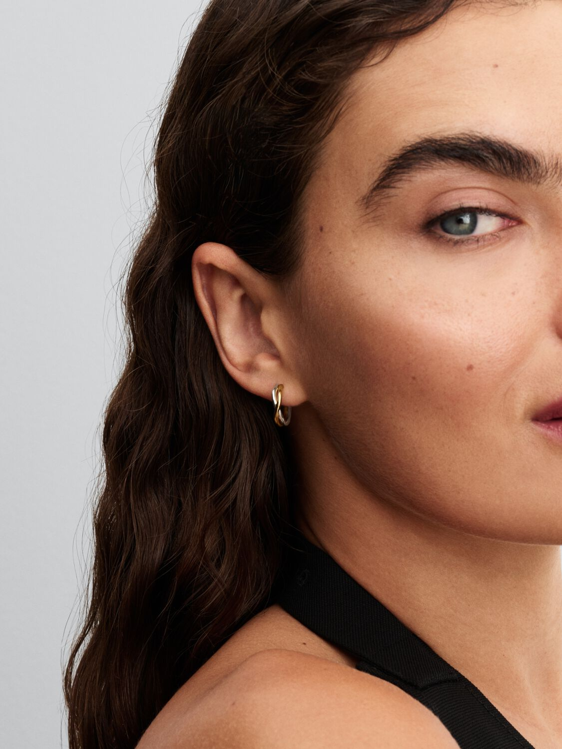Scopri la bellezza dell’imperfezione con questi orecchini a cerchio dalle linee sinuose. Caratterizzati da linee che si incrociano in metalli diversi, donano audacia a ogni look.