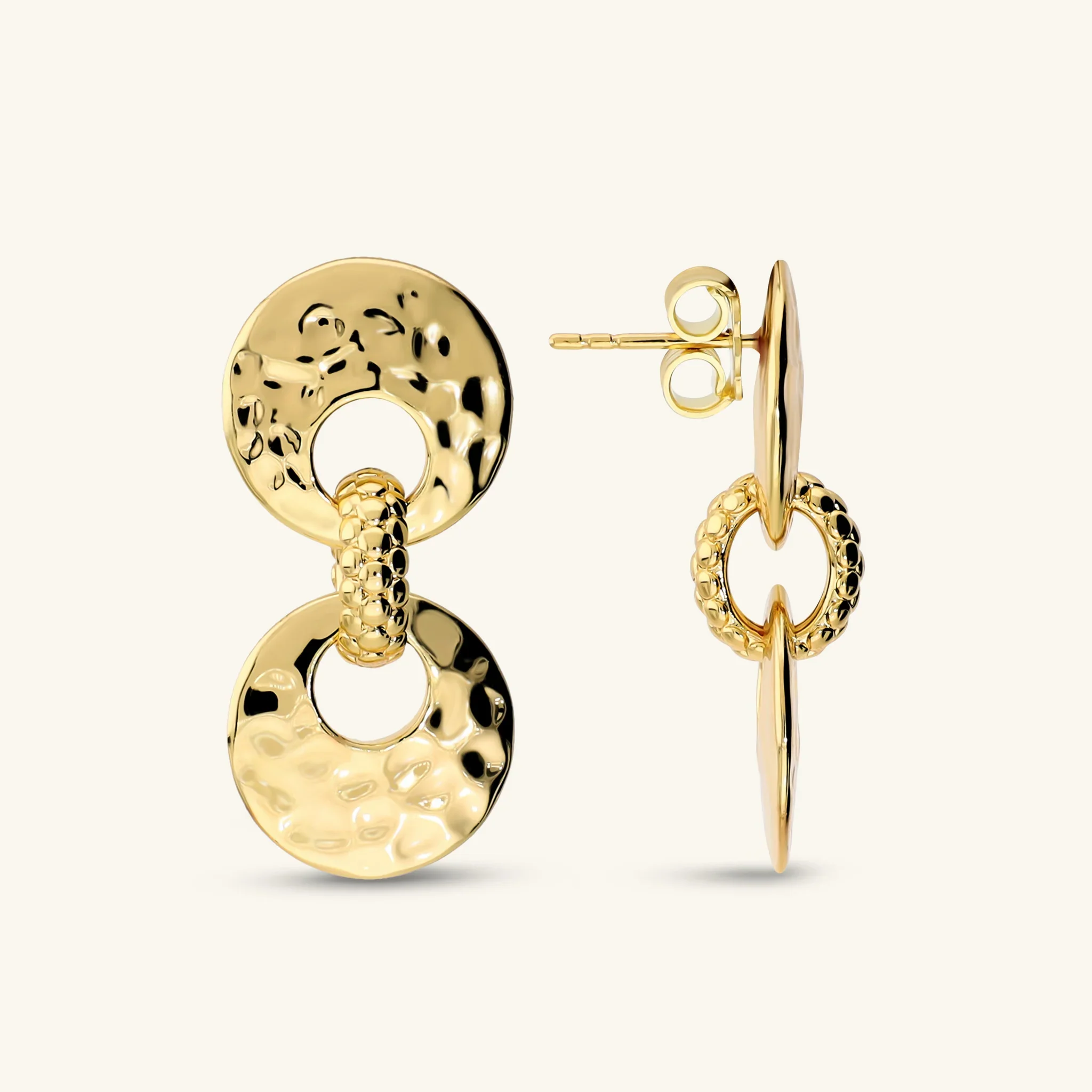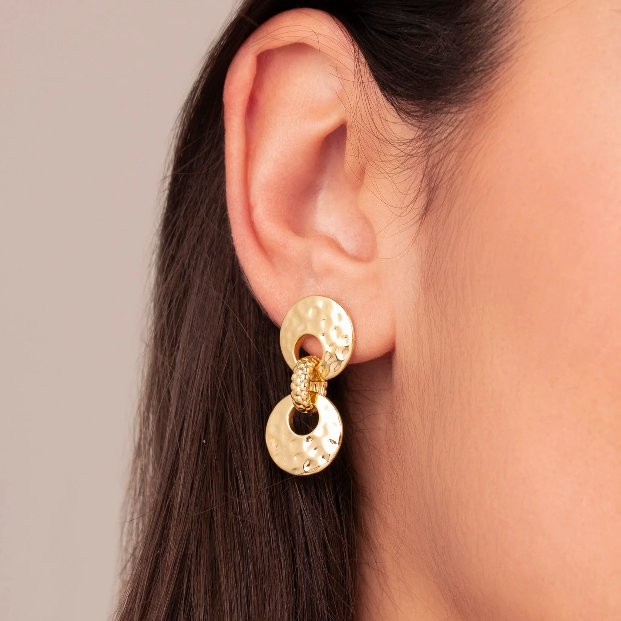 Orecchini Pendenti Donna Etrusca Doppio Disco Finitura Martellata e Pallinata
