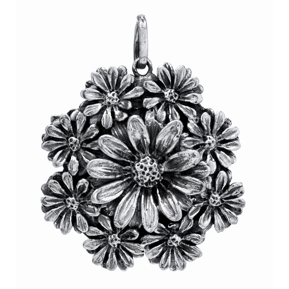Ciondolo d'argento tempestato di margherite delicate. Elegantissimo. Cura per ogni dettaglio rifiniti a mano in argento. Altezza 3,7 cm esclusa contromaglia (cm 0,9).