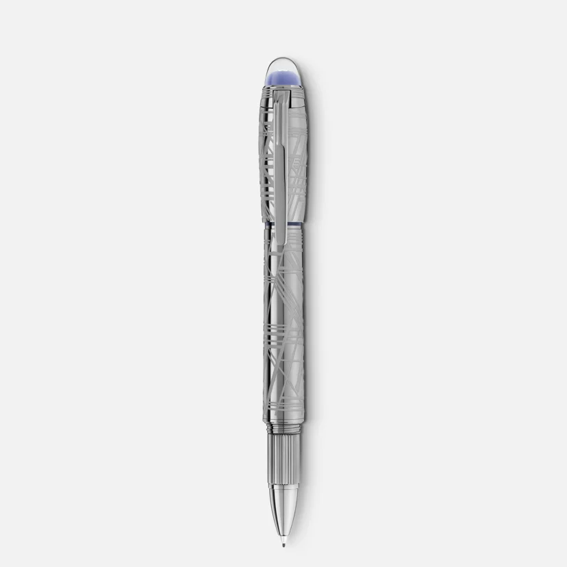 Starwalker SpaceBlue guarda oltre il pianeta terra e si gira verso le stelle e la galassia. Assolutamente maschile e futuristica, questa nuova collezione StarWalker porta un nuovo look per il cappuccio e il fusto in metallo, con un design che richiama le intricate strutture del Widmanstätten Pattern, una delle creazioni più ipnotiche della natura. Tutte le parti metalliche sono rivestite in rutenio scuro, accompagnate da un sottocupola blu profondo sulla sommità del cappuccio, che ricorda le sfumature di un cielo stellato, su cui aleggia l'emblema Montblanc.