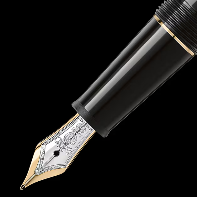La stilografica Meisterstück Gold-Coated Classique diventa un’icona del design Montblanc. Il corpo e il cappuccio sono in pregiata resina nera con emblema Montblanc bianco intarsiato. I tre anelli finitura oro con goffratura del marchio Montblanc e la clip finitura oro con numero di serie individuale mettono ulteriormente in risalto il design intramontabile della stilografica Meisterstück Classique. Questa stilografica finitura oro presenta un sistema con converter a stantuffo. che consente l’uso facoltativo di inchiostro in cartucce. e un pennino in oro 14 K lavorato a mano con inserto finitura rodio. Per esprimere la vostra personalità. Montblanc offre l’incisione gratuita di nomi o iniziali.