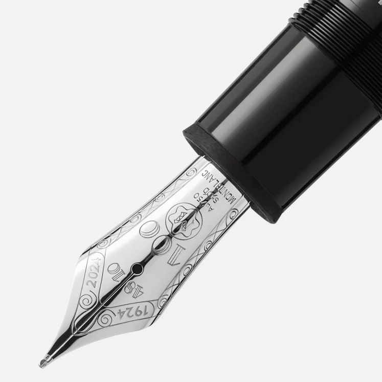 Fin dal suo lancio, nel 1924, la Meisterstück Montblanc è stata considerata la quintessenza dello strumento da scrittura raffinato, simbolo di un gusto sofisticato e di un’audace espressione della propria personalità. Impugnata per scrivere una lettera d’amore o per firmare un documento storico, da sempre la Meisterstück lascia un segno indelebile nelle pagine della storia. Per rendere omaggio a questa pietra miliare, Montblanc ha studiato a fondo i suoi archivi e ha creato la Origin Collection, rendendo omaggio alla ricca storia e al patrimonio del marchio. La collezione trae ispirazione dai primi disegni dei nostri archivi e dalle caratteristiche decorative presenti nelle prime edizioni Meisterstück, catturando lo spirito fondante e infondendogli un tocco di modernità. Sapientemente realizzato in pregiata resina nera, il cappuccio presenta un motivo fluido ispirato ai primi design, che richiama l’idea dell’inchiostro che si scioglie sulla carta, con eleganti dettagli finitura platino a contrasto. La clip è un omaggio alle prime forme di clip presenti in alcuni dei primi strumenti da scrittura Meisterstück, ed evoca un senso di nostalgia. Osservandola meglio, è possibile scoprire il logo originale Meisterstück, che fin dalla sua creazione ha ornato il cappuccio come simbolo di alta qualità. Questa edizione-anniversario è completata da un pennino in oro massiccio finitura rodio, che reca fieramente impresso il numero “100”, insieme agli anni “1924” e “2024”. Scopri altri 100 anni di eccellenza con Meisterstück!