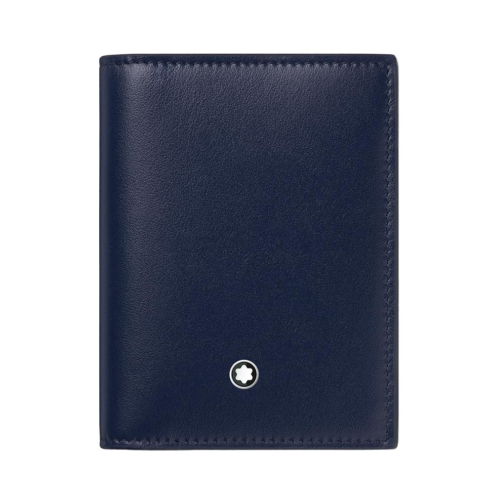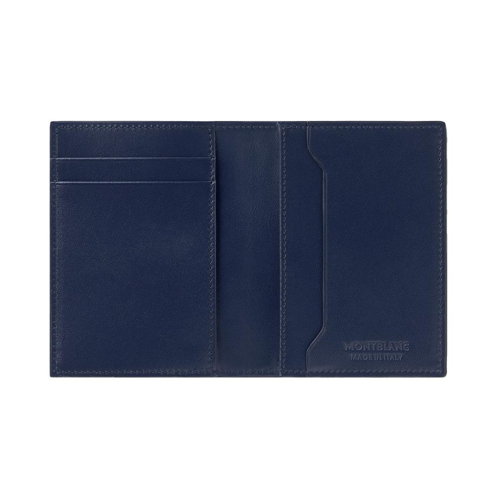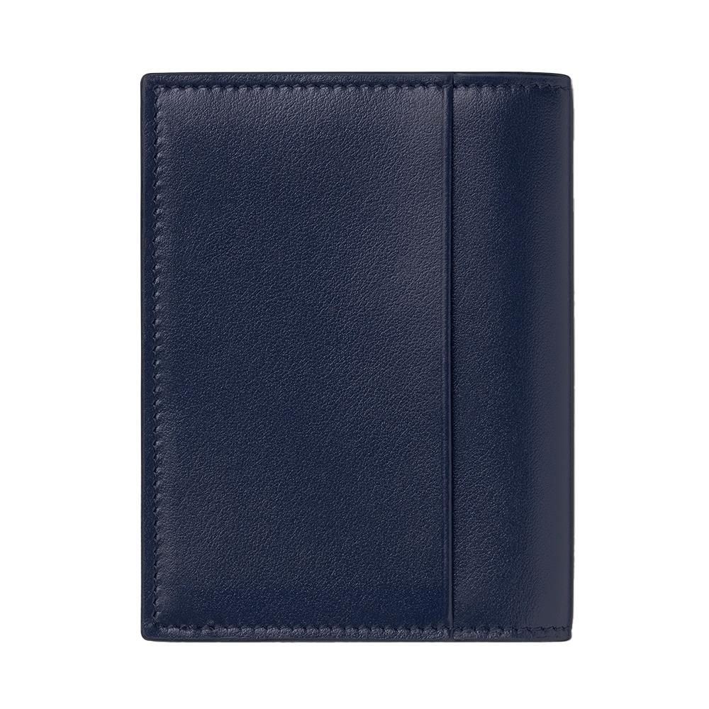 Progettato come compagno di vita, questo pratico portacarte è dotato di uno scomparto per biglietti da visita e di slot per quattro carte di credito. L'accessorio è realizzato in pelle blu inchiostro completo di emblema Montblanc che dettaglia la parte anteriore.