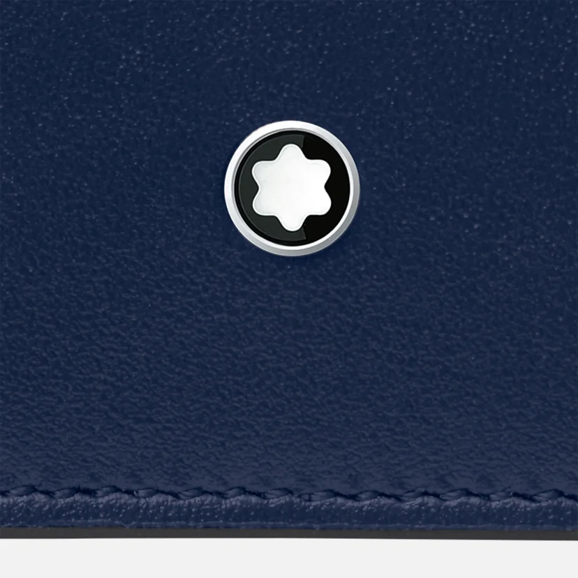 Il portafoglio compatto Meisterstück con sei slot per carte è realizzato in una nuova pelle blu inchiostro molto brillante. Il suo nuovo design interno geometrico puro esalta l'essenza della funzionalità, con molteplici slot per carte e tasche per contanti e ricevute. Questo portafoglio può essere portato comodamente con una tracolla (venduta separatamente) o riposto in tasca.
